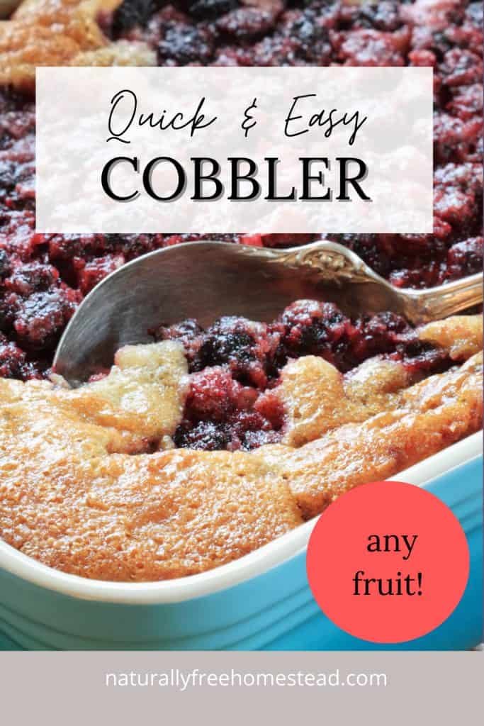 Quick and easy cobbler is very simple to make and you may use peaches, blackberries, dewberries, or anything you’d like.